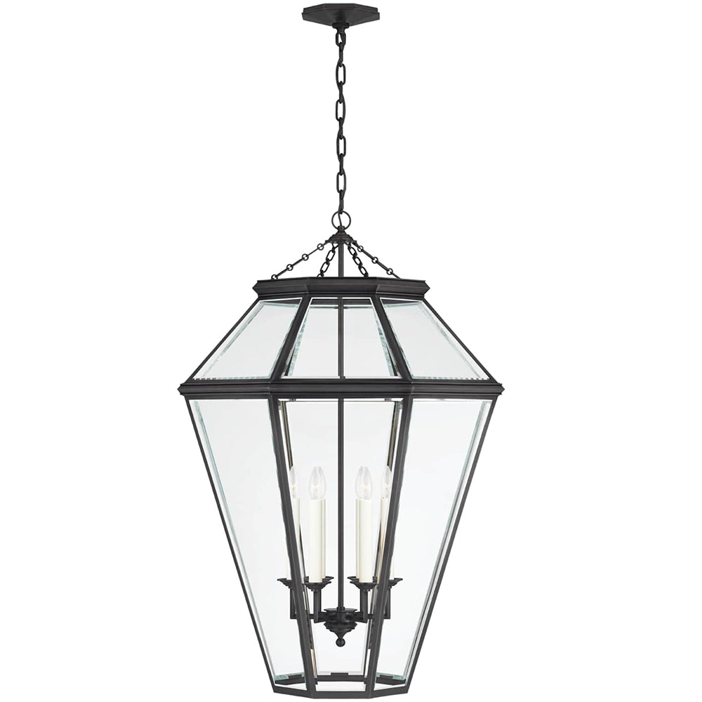 A fusion of chic styles with this Ralph Lauren Edmund Large Lantern makes this a design standout. Airy and on-trend, this Ralph Lauren Edmund Large Lantern brings a touch of contemporary style as it boosts the brightness in your space. Expertly crafted from solid brass, bronze and polished nickel the Art Deco–inspired form of Ralph Lauren’s Edmund Large lantern features a geometric silhouette enhanced with beveled glass panes and paired with an octagonal canopy. Six encased candelabra bulbs illuminate the room with a luminous, ambient glow. The Ralph Lauren Edmund Large Lantern uses stark lines and sharp angles to command the attention of the space. A chainlink splits into brief copies of itself, each spreading outward to uphold a side of this elegant piece. Metal and glass form a beautiful composition as they enclose around a set of candelabra-style lamps that hang at the center. Each lamp emits a bright glow that transforms the space, interacting with the glass paneling to create an emotional experience.