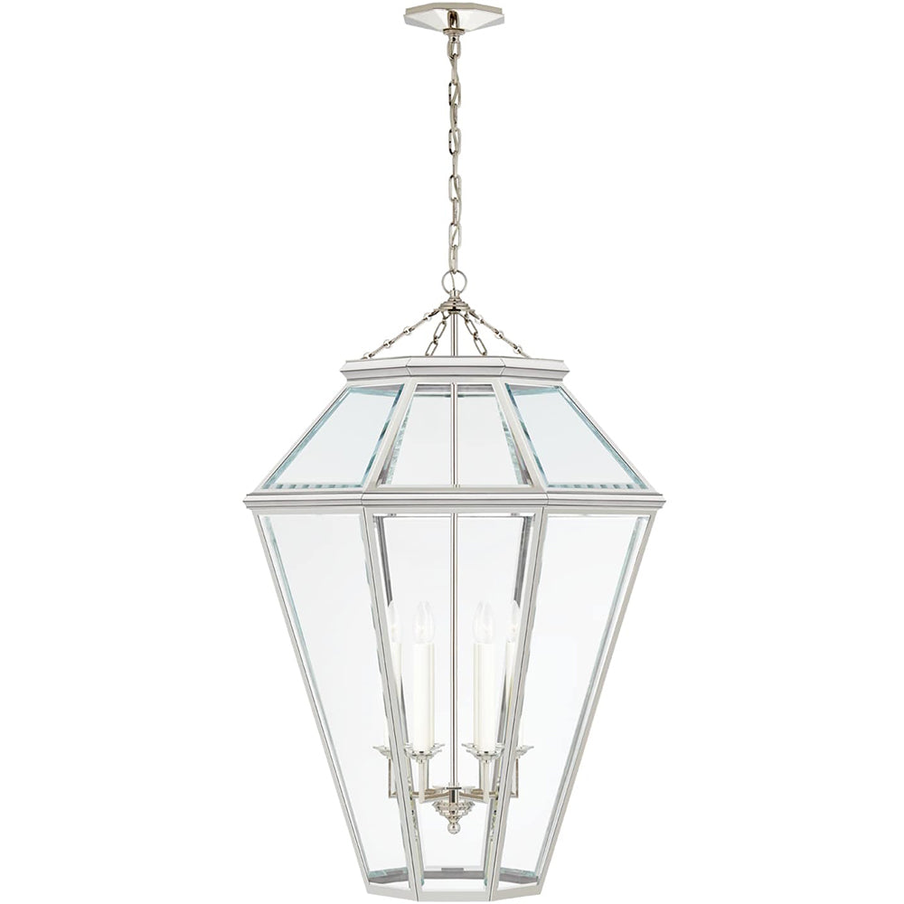 Description: Edmund Large Lantern in Polished Nickel with Clear Beveled Glass