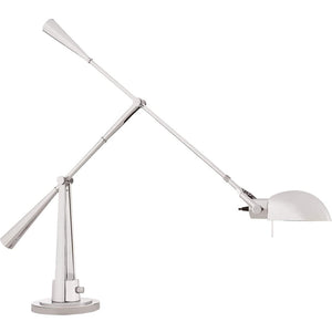 With a sophisticated industrial design, this Ralph Lauren Equilibrium Table Lamp creates a stylish effect for any room. This Ralph Lauren Equilibrium Table Lamp will add modern glam to any décor. With a classic look, you can place it in your workspace or home office to illuminate the task at hand or leave it behind a sofa for a little extra accent lighting. Part decor, part luminary, and table lamps are a great way to lend your ensemble a stylish touch of lighting with the low-impact installation. Discover this Ralph Lauren Equilibrium Table Lamp in Black and Polished Nickel finish. This conveniently adjustable table lamp is an ode to the pharmacy lamps of the early 20th century.This task/reading lamp is constructed of high-quality metal which is sturdy and rust-resistant after years of use.
