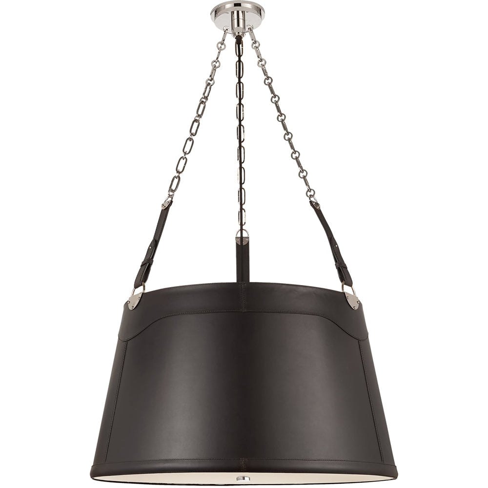 Description: Karlie Large Hanging Shade in Polished Nickel with Chocolate Leather Shade and Acrylic Diffuser