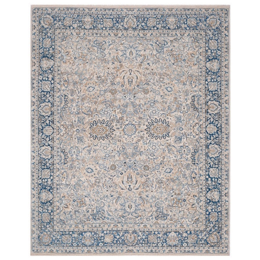 Based on an antique Persian Lavar Kerman carpet, the Imogen rug from Ralph Lauren Home pays tribute to the past but with a modern sensibility. This classic design is finely hand-knotted of vegetable dyed wool with an ivory ground, a center focal point and corner motifs common to prized rugs of the period. But the overall perception, that of a blue tone-on-tone carpet, is fresh and new.