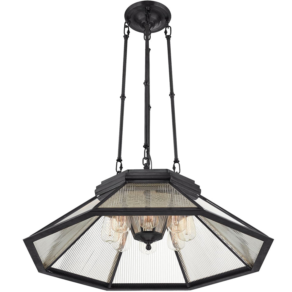 Description: Rivington Medium Eight-Paneled Chandelier in Bronze with Antiqued Ribbed Mirror