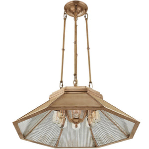 Description: Rivington Medium Eight-Paneled Chandelier in Natural Brass with Clear Glass