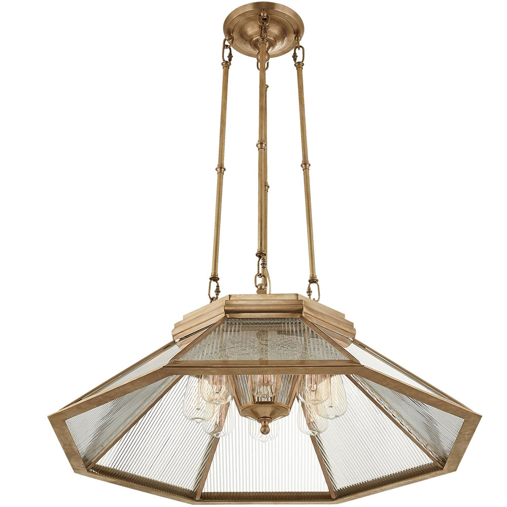 Description: Rivington Medium Eight-Paneled Chandelier in Natural Brass with Antiqued Ribbed Mirror