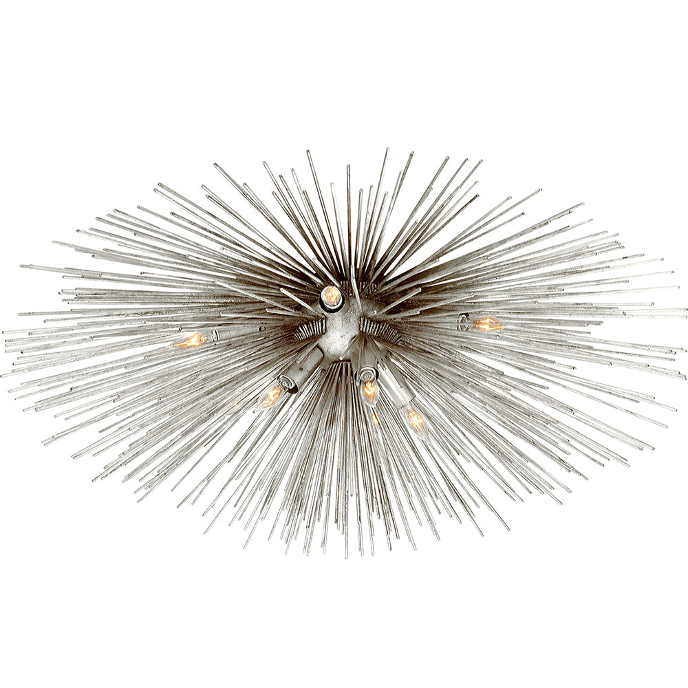 The Strada collection is delicate and ethereal. Each sculptural piece, with a seemingly random array of radiating quills, plays with cast shadow to evoke a soft sophistication. Strada Large Flush Mount by Kelly Wearstler is available in Aged Iron, Burnished Silver Leaf, Gild, and Polished Nickel.
