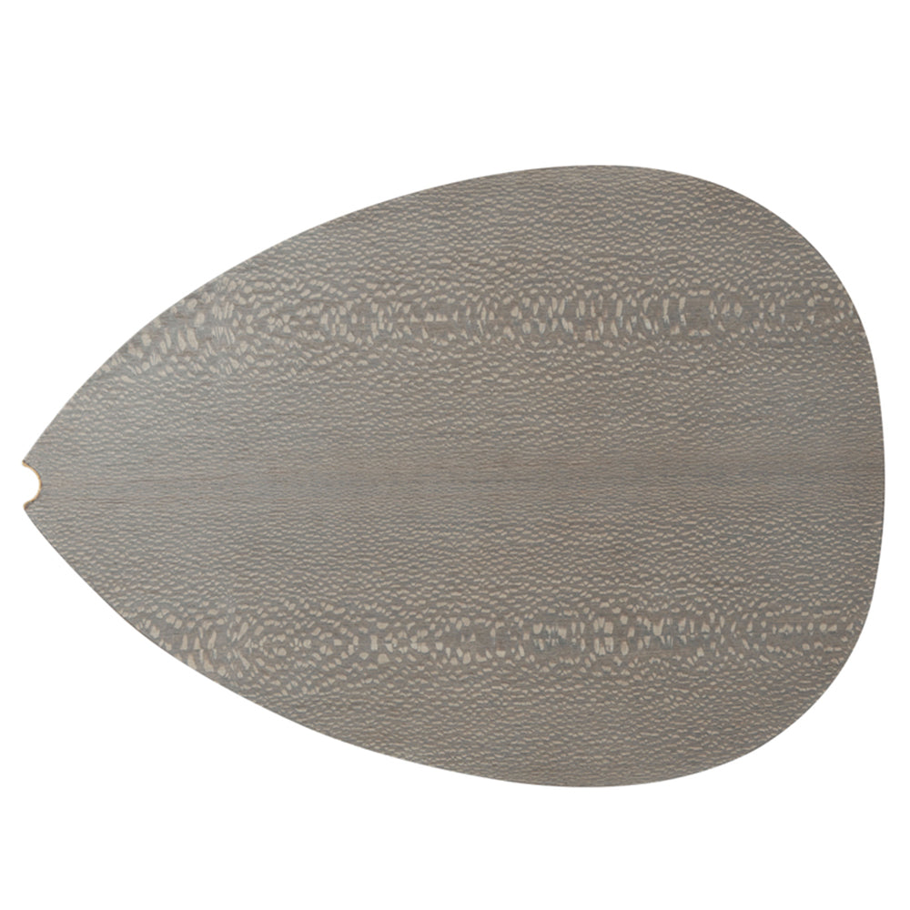 Grey Lacewood Veneered. Plectrum Outlined Top and Solid Sides. Gilt Channel Cut. Recessed Cream Lacquered Base