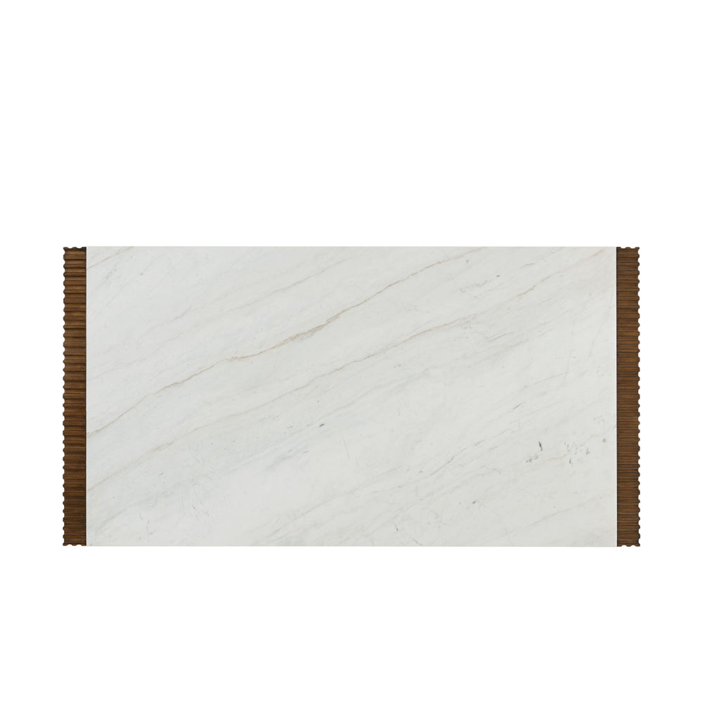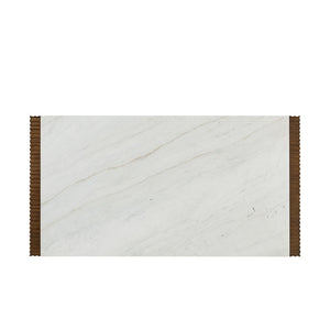 Theodore Alexander Riva Cocktail Table has a rhythmic reeded pattern in Gelato finish, marble top and Romulus finished brass base, creates the perfect combination of organic sophistication and contemporary style. Shelf below offers generous storage. Marble has natural variations and its figure may vary from piece to piece. Theodore Alexander Riva Cocktail Table, a masterpiece of modern design that effortlessly blends elegance and contemporary allure. This striking centerpiece is adorned with a rhythmic reeded pattern, meticulously crafted in a Gelato finish, creates the combination of organic sophistication and contemporary style. The smooth, polished surface showcases the natural beauty of the marble, with its intricate veining and rich hues, adding a touch of opulence to any space. The marble top of the Theodore Alexander Riva Cocktail Table elevates any gathering with its refined charm. The Romulus finish brings a warm and inviting touch to the table, while the brass material exudes a sense of understated luxury and durability. The angular lines of the base create a sense of balance and harmony, adding to the table's overall visual appeal. This table is an embodiment of style, sophistication, and functionality, making it a perfect addition to any discerning home or contemporary space.