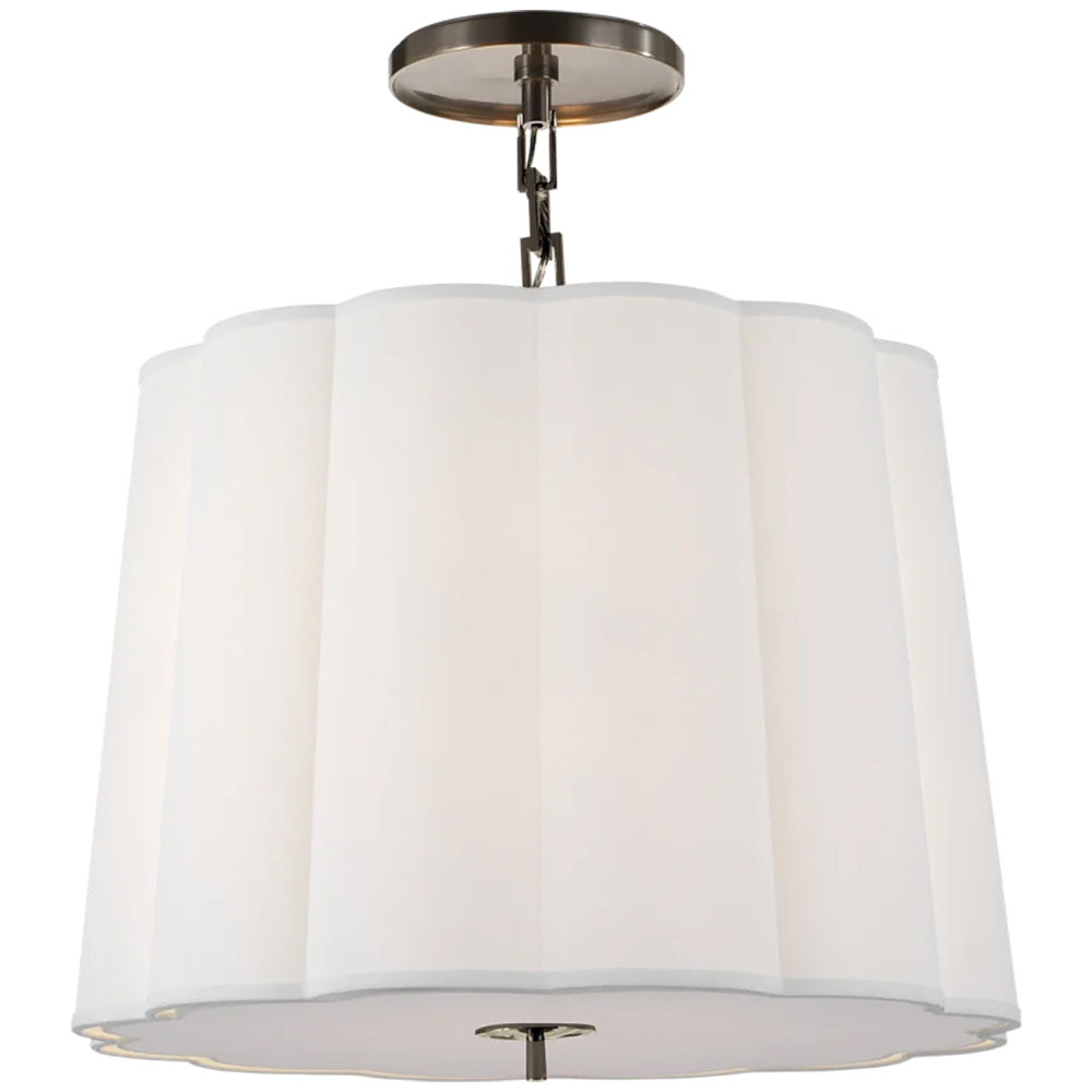 Here is the Simple Scallop Large Hanging Shade by Visual Comfort and designed by Barbara Barry. Hanging Shades adorn your space like jewelry for your room. They sparkle, they accent, and they are designed to be seen. From round to rectangular, there are so many shapes and sizes.