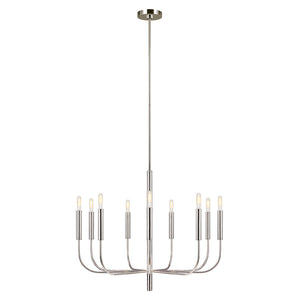 The Visual Comfort Brianna Medium Chandelier is a stunning tribute to modern minimalism, designed by the illustrious Ellen DeGeneres. The Visual Comfort Brianna Medium Chandelier's seamless, sweeping curves and long tubular arms provide a captivating counterpoint between contemporary grace and timeless beauty. With a choice of either polished nickel or aged iron finishes, the exquisite Visual Comfort Brianna Medium Chandelier is sure to captivate and elevate any home.