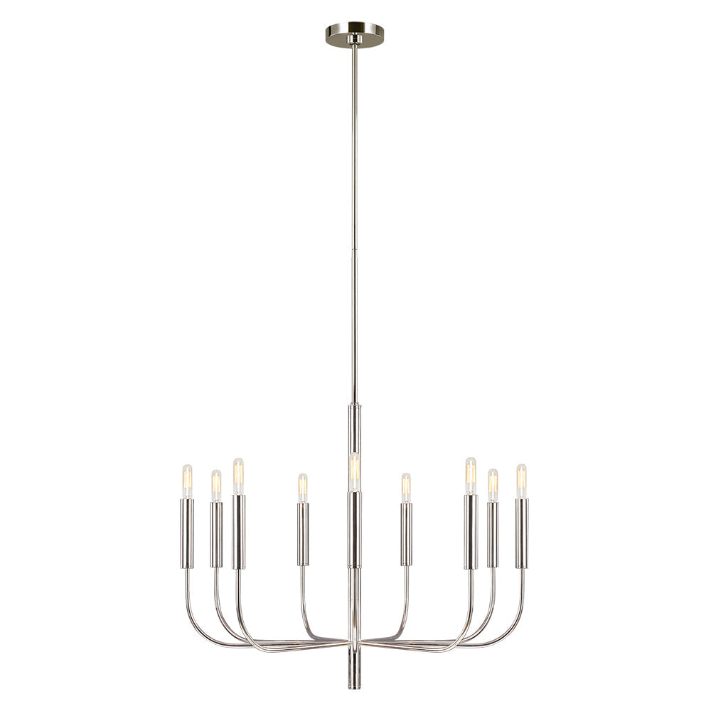 The Visual Comfort Brianna Medium Chandelier is a stunning tribute to modern minimalism, designed by the illustrious Ellen DeGeneres. The Visual Comfort Brianna Medium Chandelier's seamless, sweeping curves and long tubular arms provide a captivating counterpoint between contemporary grace and timeless beauty. With a choice of either polished nickel or aged iron finishes, the exquisite Visual Comfort Brianna Medium Chandelier is sure to captivate and elevate any home.