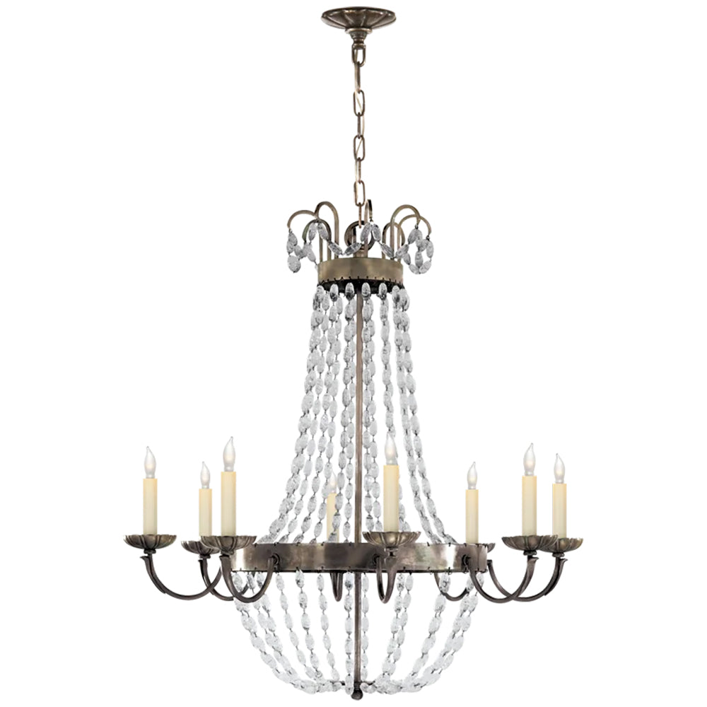 The Paris Flea Market Large Chandelier is the perfect size for any large space. This chandelier provides the perfect ambiance for dining, entertaining, or simply relaxing in your home. With four different finish types available, you are sure to find the perfect match for your new home.