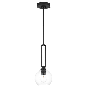 Compact illuminators as well as artful accents, and mini pendants are a great way to shine a light over your entryway or kitchen island. Modern and minimal, this Codyn One Light Mini Pendant updates your kitchen or dining room's look as it offers a boost of brightness. This collection offers a trio of stylish pendants to perfectly adorn any space. The Codyn One Light Mini Pendant in Midnight Black,Satin Brass or Brushed Nickel is a contemporary take on a classic mid-century design. Clear glass shades with open-ended spheres accent the elongated keyhole strap detail, for a clean look. This Codyn One Light Mini Pendant light can be installed on a dimmer switch so you have the right amount of light no matter the time of day. You can hang higher or lower as you want, compatible with different types of ceiling designs. This adjustable indoor fixture is ideal for foyers, bedrooms, kitchens, office reception areas, restaurants, hotels, shops, and other indoor spaces, including those with high ceilings.